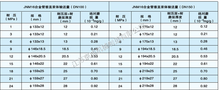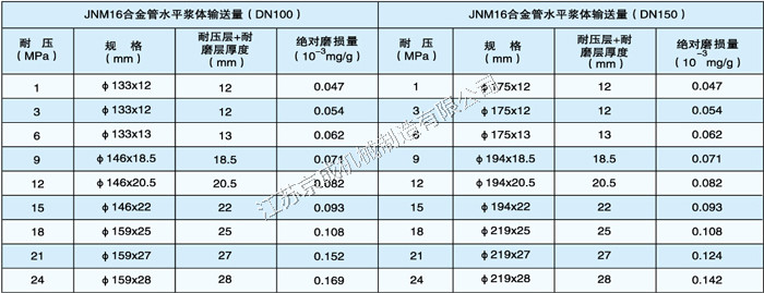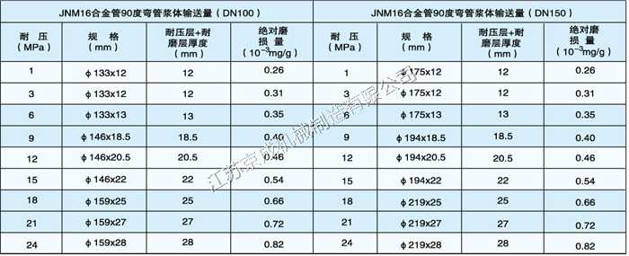 注:除表中所列規(guī)格尺寸外,高壓耐磨管件壁厚可根據(jù)磨損率和實際漿體輸送量增減。