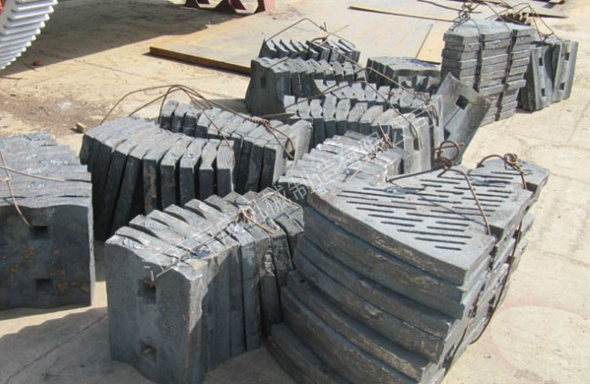 襯板材料采用高鉻鑄鐵、高錳鋼及合金鑄鋼等。