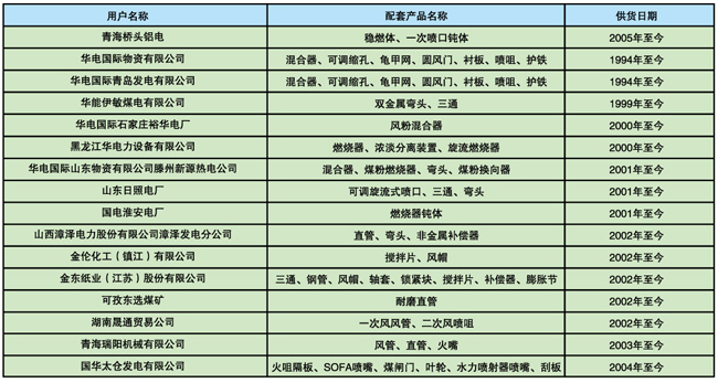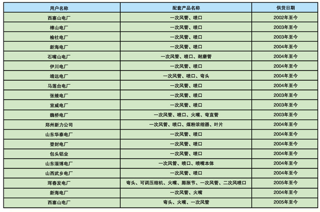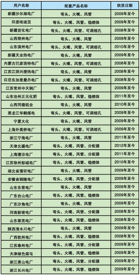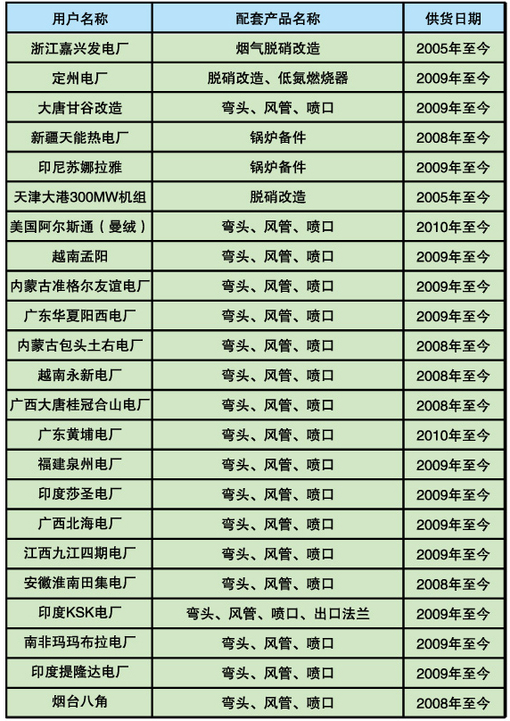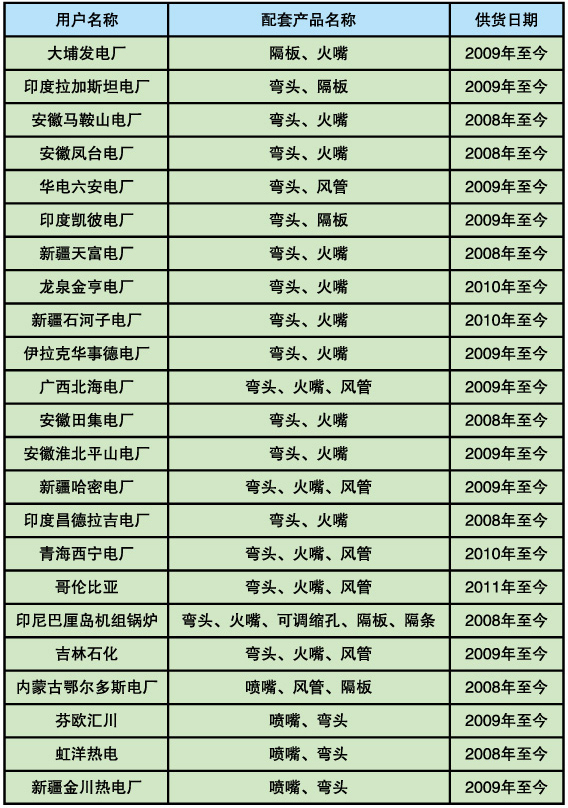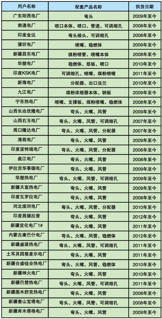 上海鍋爐廠配套項(xiàng)目的產(chǎn)品業(yè)績